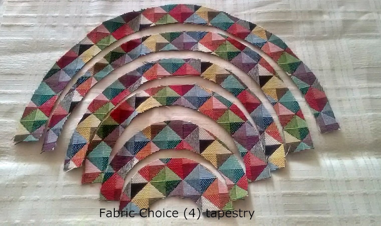 cutting out fabrics for applique on the rainbow peg bags -
