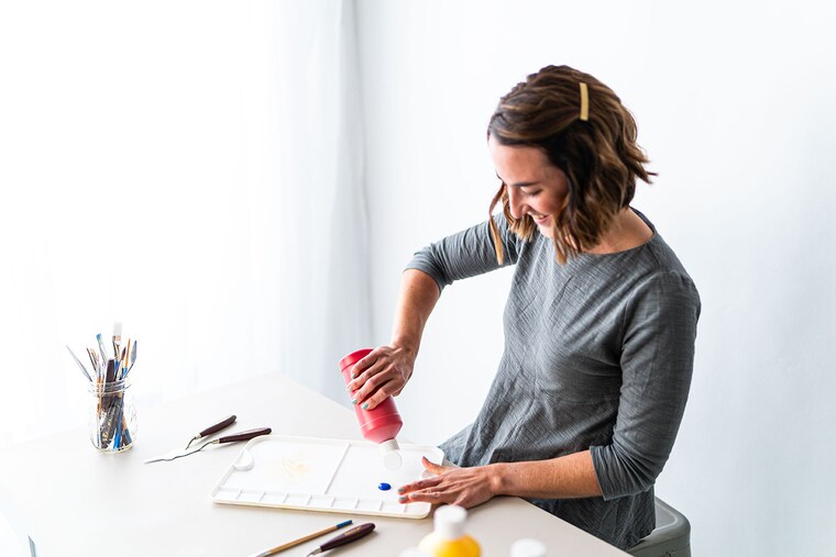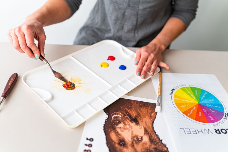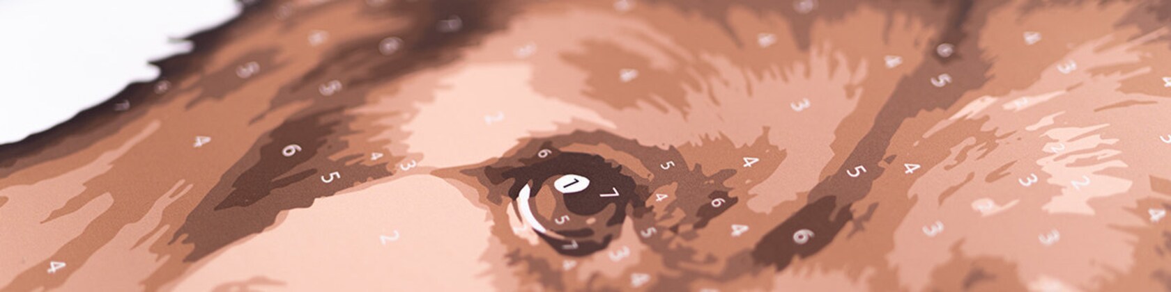 One day I was sitting with my husband at a local brewery, and a really unique painting of a dog hanging on the wall caught my eye. I told him that I wanted a painting like that of our German shepherd Rudi. With a background in graphic design and not painting, I began thinking of how I could create such a piece of art using my design skills. I took a photo of Rudi, uploaded it into my graphic design software, and after a little magic, I created a custom paint by number of our dog. I loved the final portrait so much, I wanted to share it with others!