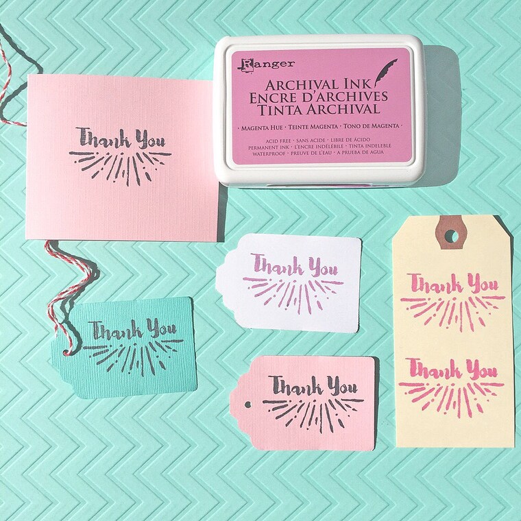 -We like to use Trodat inks (water soluble) and Ranger Archival Inks (permanent/waterproof) or StazOn (permanent solvent ink)