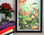 5 out of 5 starsI was looking for an axolotl picture for my daughters bedroom and this fun design in beautiful colours is the most gorgeous one I’ve seen. Prompt delivery with lovely note attached. Highly recommend you support this artist and her beautiful work xx