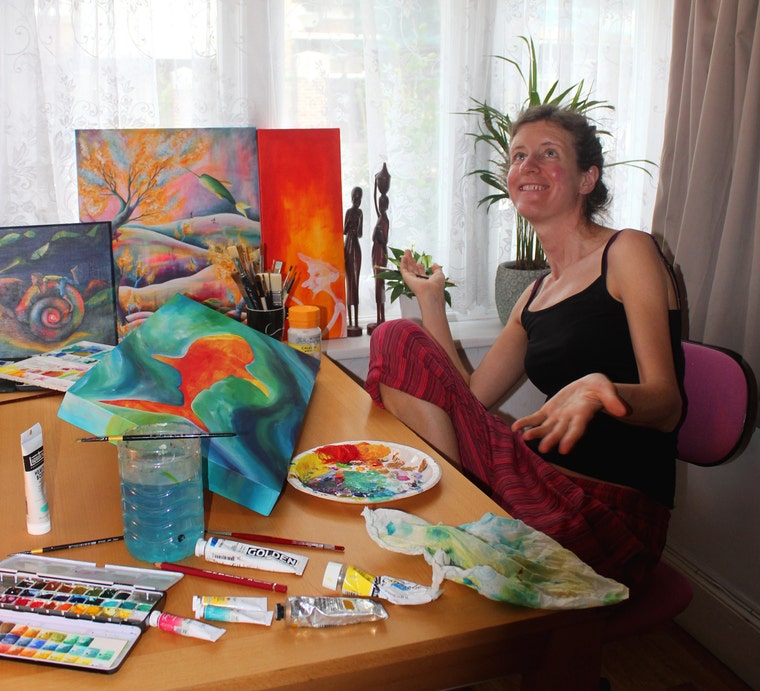 I use (strong!) colours to paint the dreamy images that pop up in my head. There’s usually loads of nature there, but it tends to be… strange and colorful!