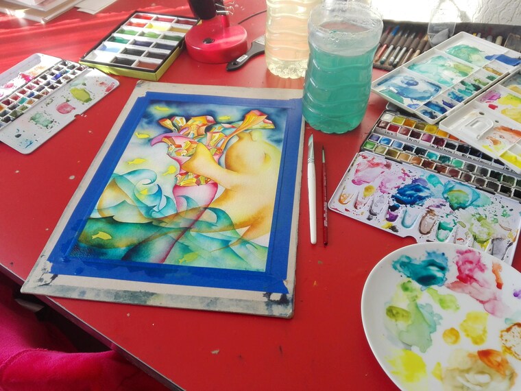 I like to experiment with several techniques, but I especially enjoy acrylics and watercolours.