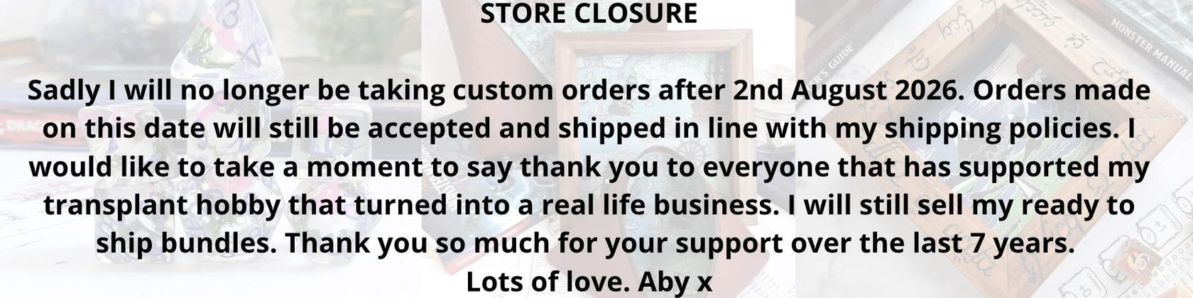 I was introduced to the world of DnD back in 2017 and it became part of my being! I absolutely loved it!! And it was then that I went in search of my own dice tray online but I couldn’t find one I liked. So I decided to create my own. And then one for a friend and another friend and another one and so on and so on... And it was then that I decided to try sell some on Etsy. And here we are with a business that has blown me away! Honestly, the community has been amazing! Thank you so much! I've since sold around 7000 dice trays and it just keeps growing!