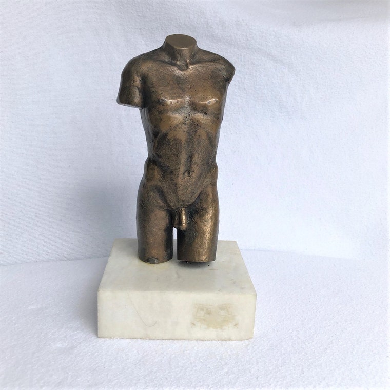 Vintage Bronze Male torso Statuette on Solid Marble Base -
