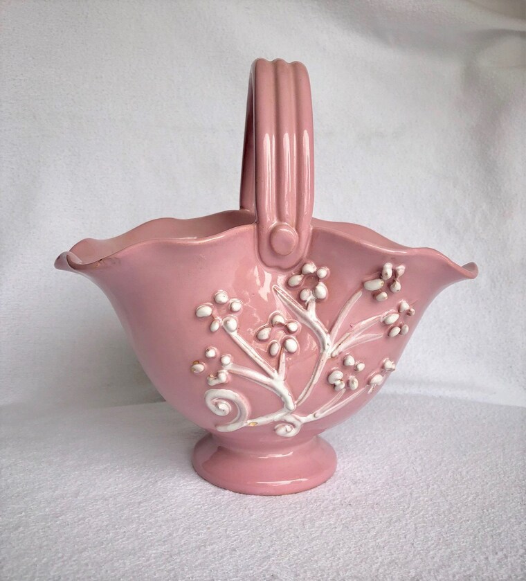 Vintage Italian Hand Painted Ceramic Basket Vase -