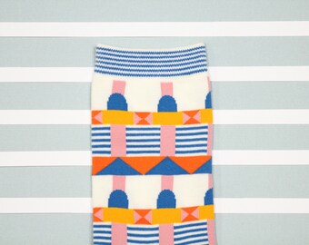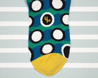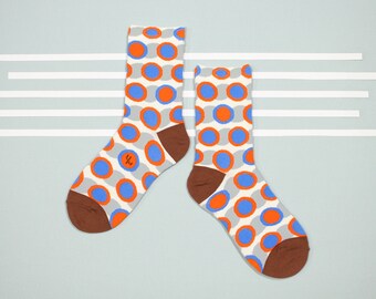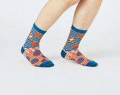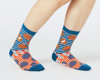 Striped Dots Blue/Orange Unisex Crew Socks | Yu Square x inBlooom | mens socks | womens socks | colorful fun & comfortable socks