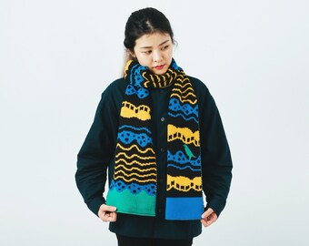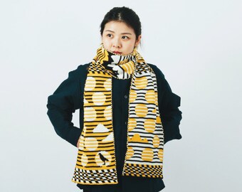 Striped Dots Black/Yellow Jacquard Knitted Scarf | Yu Square x inBlooom | Warm Winter Gift