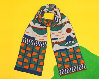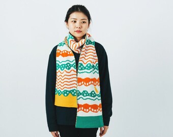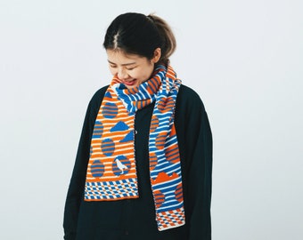 Striped Dots Blue/Orange Jacquard Knitted Scarf | Yu Square x inBlooom | Warm Winter Gift