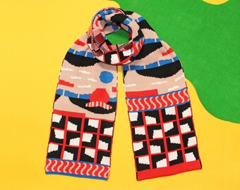 Wave White Jacquard Knitted Scarf | Yu Square x inBlooom | Warm Winter Gift