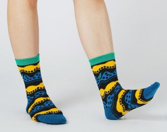 5 out of 5 starsGreat seller, love these adorable and distinctive socks! Bold colors and unusual pattern~