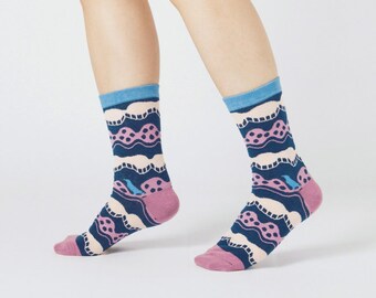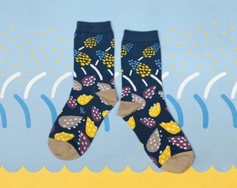 Wave Navy Unisex Crew Socks | Yu Square x inBlooom | mens socks | womens socks | colorful fun & comfortable socks
