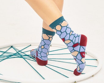 Honeycomb Lilac Transparent Sheer Socks | see-through socks | womens socks | colorful fun & comfortable socks