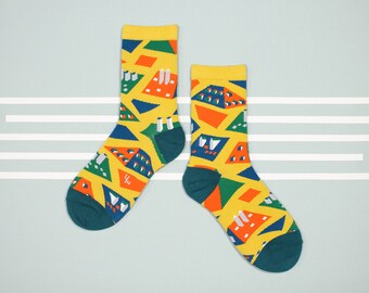 Rooftops Mustard Unisex Crew Socks | cotton socks | colorful fun & comfortable socks