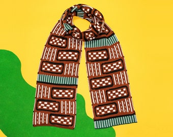Vertical Pots Brown Double-sided Reversible Knitted Scarf | Warm Winter Gift