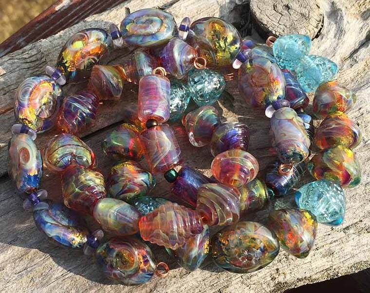 Como ex costurera, pasé varios años aprendiendo a digitalizar diseños de bordado y a hacer bordado a máquina. Un día vi un programa de televisión donde una mujer estaba haciendo cuentas de vidrio con una antorcha y pensé: "¡Puedo hacer eso!". Compré una linterna, vidrio y herramientas, y nunca miré hacia atrás.