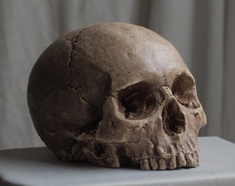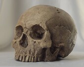 HUMAN SKULL REPLICA (natural) full size realistic replica made from plaster of Paris and painted for an aged, weathered effect