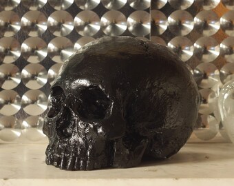 HUMAN SKULL REPLICA gloss black Finish - full size human skull replica (plaster of Paris) painted gloss black