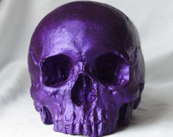 HUMAN SKULL REPLICA metallic purple (sale price) - full size detailed replica skull made from plaster of Paris and painted metallic purple
