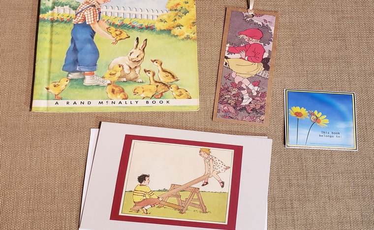 I love Vintage illustrations. Especially those from children's books and magazines. I also love crafting using these vintage illustrations. For years I've been making mixed media cards and pictures. I found a passion in going to sales (auctions and estate sales) to find damaged books and magazines to use in my creating. One man's trash became my cherished treasures. Soon I had more "goodies" than I'd ever be able to use - and my Etsy story began. I love sharing my found treasures with others.