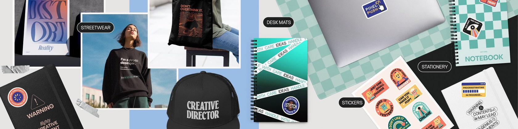 In my product collection you'll find unique designs with a touch of humor, perfect for gifting to a friend, coworker, family member, or just for you. Some of my products are tailor-made for designers, creatives, writers, illustrators, UX designers, and anyone who craves a dash of creative energy in their lives. Whether you're cultivating a vibrant workspace, rocking streetwear, or leveling up your gaming setup, I've got something unique for every creative soul. 😄✍️🎨