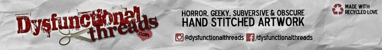 Picking up where I left off in 2007, I'm working towards turning Dysfunctional Threads into a one stop shop for all your obscure cross stitch needs. Whether it's a pattern you're looking for or a completed cross stitch, you can find a wide variety of modern designs from horror to geeky, subversive to supportive, to just plain cute!