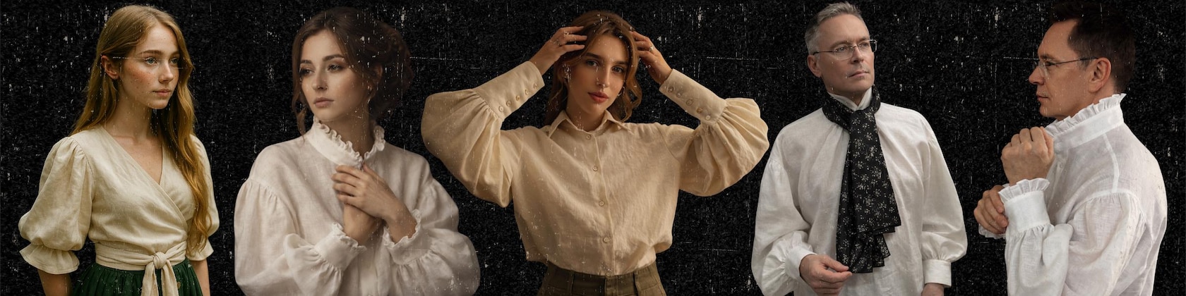 • Styles for every taste: from classic blouses with lace collars to stylish tops and pants.