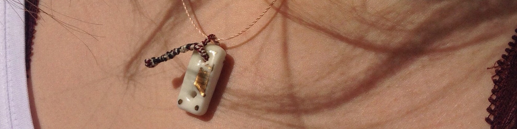 COLGANTES DE PORCELANA: Es recomendable quitarse las joyas antes de bañarse o nadar. El aspecto del colgante y el cordón cambiará con el desgaste y si se usa en agua o se expone a productos de belleza. La porcelana es un material delicado que puede romperse si se deja caer sobre una superficie dura.OLLAS DE PORCELANA: La naturaleza artesanal de las ollas arrojadas ocasionalmente puede producir fallas diminutas o marcas en la arcilla en la base o burbujas y textura desigual en el esmalte. Esto no afecta la estructura de la olla.