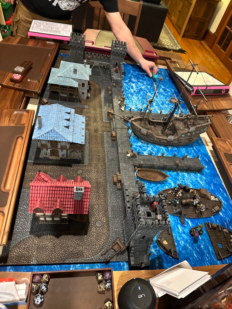 One of my monthly D&D sessions. This setup was amazing! -