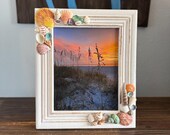Marco de playa de 8 x 10 pulgadas, decoración rústica de conchas marinas y madera flotante