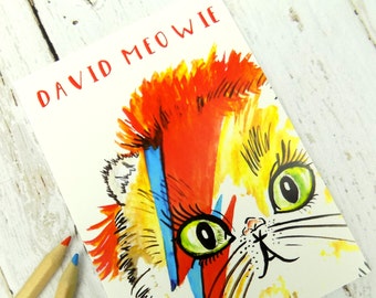 David Bowie Cat Postcard, Cute Funny Cat Pun Stationary