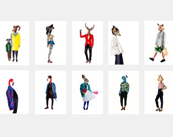 Art postcard set, animal postcards, 10 postcard set, modern stationery, animals in clothes,sets of postcards,unique postcard set,dressed fur